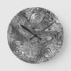 Relógio de parede com um legal design abstrato de "aparência de metal líquido", e formas giratórias, borbulhantes em tons de cinza prateada. Pode ser usado como um fundo para o seu próprio texto, imagens e ideias. Note que esta é uma imagem de arte digital impressa em um fundo acrílico, ela não brilha ou contém metal real.