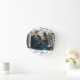 Relógio de parede com sua foto personalizada emoldurada por um contorno branco fofinho. Com um texto em letra cursiva encantadora. Você pode excluir a imagem da indicação da hora se não precisar dela. Este relógio é uma lembrança linda após um casamento de Natal ou inverno.