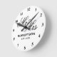 Costume o relógio de presente de casamento do Sr. e da Sra. newlyweds. Modelo de tipografia de script elegante com nome de família e data do casamento. Presente clássico para casal recem casados ou noiva e noiva. Decoração de design branco e preto chic. Decor personalizado para cozinha, escritório, sala de estar, quarto etc. Adicione seu próprio ano e sobrenome. Cores personalizáveis.