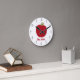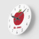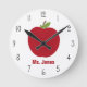 Um relógio para professores com ilustração de uma maçã vermelha. Personalize com o nome do seu professor em vermelho.