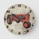 Relógio de parede redonda com imagem de um trator vintage contra papel de jornal vintage.