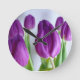 Um bonito relógio floral mostrando uma foto de flores de tulipa púrpura! Uma adição adorável à sua decoração doméstica Tulips é uma flor de eterno e um favorito firme com todos os jardineiros. A imagem pode ser colocada em uma grande seleção dos melhores produtos do Zazzles para fazer o presente floral ideal ou combinar com outros produtos.