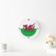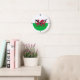 Este relógio de parede mostra a bandeira do País de Gales, Baner Cymru, com o Dragão Vermelho, Y Ddraig Goch, em um campo de verde e branco no centro da face do relógio. O relógio é personalizável. Use a opção Escolher seu estilo para escolher o tamanho (médio ou grande) e a forma (redondo ou quadrado).
