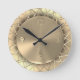 Um rico e um relógio de cor dourada falso com detalhes de fio falso e números de efeito faux 3d. Tudo muito falso e fabuloso. Todos os efeitos visuais e não ouro real (ou fio metálico, ou spokes)