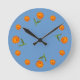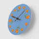 As flores de calendário são organizadas como as posições numéricas neste relógio. As flores laranja nos 12, 3, 6 e 9 têm caules e folhas apontando para o centro, os outros "números" são levemente menores, sem caules. Personalizar/Editar para alterar a cor do plano de fundo de seu gosto.