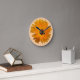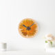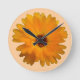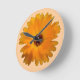 Este relógio maravilhoso mostra uma foto de uma bela flor de laranja com um centro escuro. O fundo é uma bela cor laranja pálida.