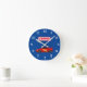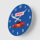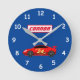 Um relógio de corrida para o quarto ou quarto de criança. design de esportes de automóveis para um carro de corrida. Personalize com o nome ou monograma da criança. Cor de fundo personalizada, ou seja, azul. A sala de tendências decora ideias para crianças. Tema esportivo presentes de aniversário.