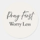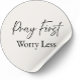 Adesivo cristão minimalista com a mensagem “Ore Primeiro, Preocupe-se Menos” — um lembrete calmo e diário para escolher a oração em vez da ansiedade.