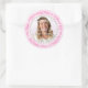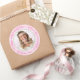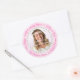 Redondo Rosa, Adesivo de Feliz Aniversário com Nome e Foto