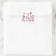 Etiquetas de reconhecimento de canceres de mama com cinco figuras de pau fêmeas em roupas cor-de-rosa e texto cor-de-rosa que diz "Rosa para uma Cura!". Personalize-os com um nome no local, se preferir ou solicitar não personalizados.