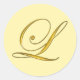 Letra Dourada L no Script Edwardian para selos de envelopes, adesivos, etiquetas ou projetos de artesanato. Altere a cor de fundo ou redimensione o L para usar em qualquer tamanho ou adesivo de forma.