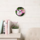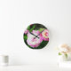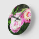 Este belo relógio redondo apresenta um conjunto de peões de sorbet rosa e creme duplos em cheio bloom. Faz o presente perfeito para aquele jardineiro favorito.