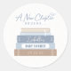Um Novo Capítulo Começa O Chá de fraldas Sticker. Personalize com o nome da futura mãe e a data do evento. Todas as cores são editáveis.