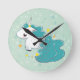 Redondo unicórnio de desenho azul com relógio de estrelas