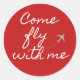 Redondo Venha voar comigo, adesivo branco/vermelho minimal