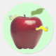 Redondo Vermes bonitos em um adesivo de maçã