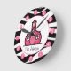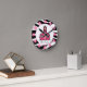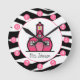Um relógio com um design de impressão zebra e o logotipo da Escola Rosa. Personalize com seu nome em uma escola. O relógio apresenta números brancos em pontos cor-de-rosa.