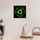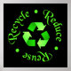 Reduzir - Reutilizar - Reciclar - poster preto com letra de script verde e símbolo de reciclagem.