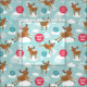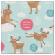 Tema de renas voadoras engraçado com céu azul pastel, nuvens e círculos de arte de texto. Um com área de texto pronta para personalizar com nomes, Cartões de natal ou palavras divertidas.