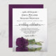 Este convite de casamento é elegante, elegante e bonito, enquanto ainda é amigável e barato. Apresenta uma simples design romântica com um solteiro roxo de ameixa ou rosa de berinjela de longo, refletindo numa piscina de água com ondas e ondulações. A tipografia inclui a caligrafia com escrita clássica com pestanas, caudas e florescimento. Uma maneira maravilhosa de convidar seus amigos e família para compartilhar sua alegria em seu dia especial sem quebrar o banco.
