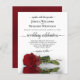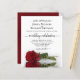 Este convite de casamento é elegante, elegante e bonito, enquanto ainda é amigável e barato. Ele apresenta uma simples design romântica com uma rosa vermelha de solteiro de longo curso refletindo em uma piscina de água com ondas e ondulações. A tipografia inclui a caligrafia com escrita clássica com pestanas, caudas e florescimento. Uma maneira maravilhosa de convidar seus amigos e família para compartilhar sua alegria em seu dia especial sem quebrar o banco.