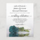 Este convite de casamento é elegante, elegante e bonito, enquanto ainda é amigável e barato. Apresenta uma simples design romântica com uma rosa de cor lacrimejada ou turquesa, solteiro de , refletindo numa piscina de água com ondas e ondulações. A tipografia inclui a caligrafia com escrita clássica com pestanas, caudas e florescimento. Uma maneira maravilhosa de convidar seus amigos e família para compartilhar sua alegria em seu dia especial sem quebrar o banco.