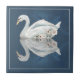 Neste azulejo, uma imagem de aquarela de um lindo cisne branco flutua sobre um profundo lago azul, é reflexo perfeitamente espelhado. Ao lado do cisne há flores rosa pálidas. A imagem é emoldurada por uma fina linha branca. Elegante! Certifique-se de ver os produtos correspondentes em nossa loja.