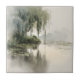 Azulejo Cerâmico - Serena árvore de salgueiro em aquarela com folhagem verde suave e reflexão pacífica no lago. Ideal para amantes da natureza, buscadores de mindfulness e aqueles que amam paisagens tranquilas e relaxantes.