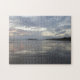 Reflexões cintilando da água do sol que ajusta-se sobre uma praia em Swansea.