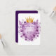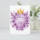 Este belo modelo de convite para casamento apresenta uma coroa ouro real adornada com joias ametistas, aninhada sobre um escudo heráldico embrulhado em ouro. Ao redor do design são lavandas exuberantes e peônias violetas, criando um luxuoso e vintage motif floral. Perfeito para casamentos românticos, reais ou celebrações elegantes com um toque de nobreza e encanto floral. A blindagem de vazio oferece espaço para nomes, datas ou mensagens personalizados.