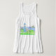 Americana Desenhada à Mão 2 Faróis Flores com Tanque feminino com vida na praia no verso