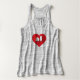 Este tanque sem manga apresenta um coração vermelho vibrante contendo letras maiúsculas e minúsculas negros, brancas, arredondadas, uma abreviação lúdica para Alabama, o estado dos amarelos.