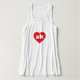 Este topo do tanque apresenta um coração vermelho vibrante contendo letras maiúsculas e minúsculas em negrito, branco, arredondado, uma abreviação lúdica para o Alasca, a última fronteira.