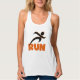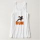 Tirando T-shirts, canecas, bolsas, guardas, topos de tanques, capuzes, e outros roupa e presentes para corredores com uma pista de silhueta preta e um texto laranja que lê RUN. Esses itens de roupa RUN e presentes são excelente para qualquer um que esteja treinando para um 5K, qualquer um que apenas ame correr, ou alguém que já tenha realizado várias maratonas!