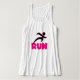 Tirando T-shirts, canecas, bolsas, guardas, topos de tanques, capuzes, e outros roupa e presentes para corredores com um corredor de silhueta preto e um texto rosa-quente com leitura RUN. Esses itens de roupa RUN e presentes são excelente para qualquer um que esteja treinando para um 5K, qualquer um que apenas ame correr, ou alguém que já tenha realizado várias maratonas!