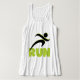 Faça design com T-shirts, capuzes, tampas de tanques, camisetas de manga compridas, botões, bolsas, guardas e outros roupas e presentes que apresentem um corredor de silhueta preto e um texto verde primavera que leia RUN. Se você estiver treinando para executar seu primeiro 5K, apenas adoro correr, ou ter passado várias maratonas, você vai adorar esses itens de roupa e presentes corridos.