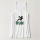 Se você estiver à distância correndo, seja apenas treinando para seu primeiro 5K ou você tiver realizado um 5K, 10K, meia maratona, ou maratona, você vai adorar nossas T-shirts RUN, capuzes, tampas de tanques, botões, canecas, guardas, e muitos outros itens de roupa de corrida com um corredor de silhueta preto e texto verde teal.
