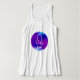 Tanque de treino de fundo de racer em branco e nebulosa de espaço roxo/azul com o símbolo para Leo.