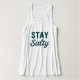 Se você está salgado pela brisa do mar, ou cheio de atitude salgada, esta estampa gráfica 'Stay Salty' na blusa regata decote americano é para você. As fontes modernas e vintage teal levemente desgastadas criam uma declaração divertida e sutilmente sarcástica. Perfeito para quem vive de chinelos e com uma mentalidade costeira relaxada.