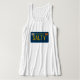 Travel back in time to the year 1969 with this retro-inspired California license plate design. Bold embossed-look yellow text with the custom tag number "SALTY" pops on the blue contrast. The vintage style lettering, tag stickers and panhead screws bring a nostalgic vibe. This scoop neck tank top is the perfect casual statement piece for beach days, boat days, weekend adventures, and everyday coastal life.