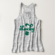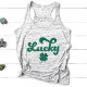 Partilhe a sorte dos Irlandeses com o nosso super fofo tanque de Dia de São Patrício inspirado. Design apresenta "sortuda" na tipografia da bolha esmeralda verde retro e uma ilustração do trevo de quatro folhas com um efeito de safra angustiado.