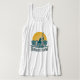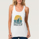 Sunrise Flow features a woman practicing paddleboard yoga as the golden sun is rising and the teal blue sea ripples as she poses confidently in reverse warrior on her board. The light distressing, font and color combination give this graphic a retro surf shack vibe. This scoop neck tank top is perfect for the yoga studio, paddleboard sessions, beach days, and everyday coastal life.