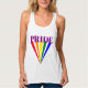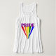 Apoiando o movimento PRIDE com este tanque de tipografia no topo com raios arco-íris nas cores do gay.