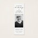 Crie um belo e significativo tributo com nosso Simple Funeral Memorial Prayer Photo Bookmark Card. Este marcador personalizável apresenta um design simples e minimalista, fazer que seja uma escolha perfeita para qualquer memorial ou serviço funerário. A inclusão de uma foto permite personalizar o marcador com uma lembrança carinhosa do seu amado. A carta também inclui uma oração corajosa, que proporciona conforto e consolo durante este período difícil. Com as palavras "In Loving Memory" mostradas elegantemente, este marcador serve como uma emocionante salvaguarda e lembrete do impacto persistente que seu ente querido teve na sua vida e na vida de outros. Compartilhe esses marcadores com a família e os amigos como um gesto atencioso ou distribua-os como um favor memorial durante o serviço funerário. Escolha nosso Cartão de Visita Fotográfica Simples do Memorial Orador Funeral para homenagear a memória de seu ente querido e oferecer um tributo duradouro que será apreciado por todos.