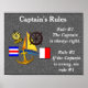 Regras do Capitão - Regra de poster nº 1 O Capitão tem sempre razão. Regra 2 Se o Capitão estiver errado, veja a regra 1.