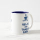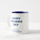 Engraçado Dia de os pais. O cartão diz "Pai rei relaxe e leve" "Dia de os pais feliz Muitos amores depois adicionam seus nomes. Mug projetado exclusivamente por Sarah Trett.