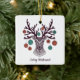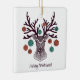 Reindeer de estilo boêmico com ornamentos Traga muito mais alegria de férias para sua árvore com um ornamento cerâmico personalizado. Adicione fotos de família, amigos e uma mensagem pessoal aos dois lados deste ornamento. Um fio de ouro torna fácil pendurar esta fantástica marca de sempre.