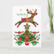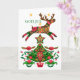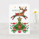Um cartão de renas popular no estilo popular escandinavo. Ilustrada por Anni Arts no estilo das tradicionais pinturas folclóricas Scandi. Uma rena popular salta sobre uma árvore de Natal em cores tradicionais. Veja também os outros cartões de Natal Anni Arts Escandinavos e produtos com a coordenação de renas folclóricas, alces/alces, cabras de Natal e ilustrações de cavalo folk Dala. Personalize o exterior e o dentro com sua própria mensagem.