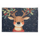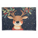 Uma rena feliz enfeitada com bagas sagradas e conterrâneo em suas galhadas, colocada contra um céu azul mágico e noturno cheio de estrelas.