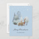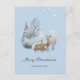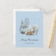 Cartaz de Natal Feliz, com uma cena de inverno a aquarela, com um pinto e um pinto numa floresta nevada e estrelas brilhantes sobre eles. Personalize facilmente este belo cartão postal de feriado com seu nome familiar, endereço de retorno e texto adicional, conforme desejado.